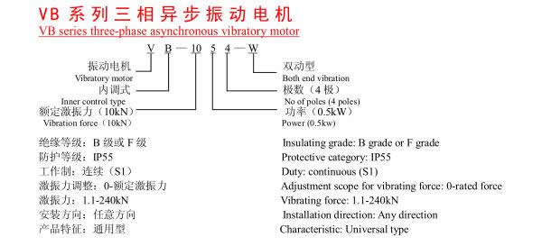 VB系列振動(dòng)電機(jī),功率0.12~25KW,2、4、6、8極,激振力為2.5~300KN,共計(jì)56個(gè)規(guī)格。