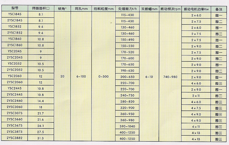 YSC系列圓振篩技術(shù)性能和參數(shù)