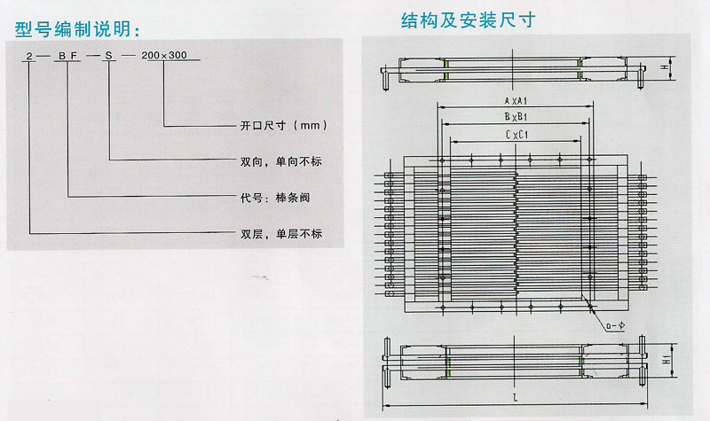 本閥主要由框架、棒條組成,當棒條插入框架上,則一組棒條組成一平行柵板,將塊狀物料阻擋在閘門一側(cè),若抽出一條則柵板出現(xiàn)一條較大的空隙,物料就可以從該空隙進入閘門的另一側(cè),抽出棒條的多少應由工藝流程的需要來決定。